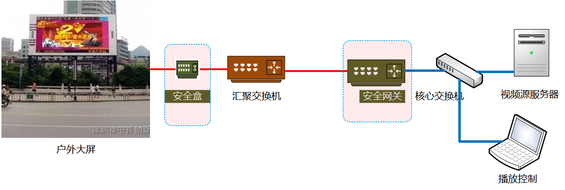 針對公共大屏數據【戶外大屏】的安全管控,防止不法分子在線路上做手腳,插播反動內容。在視頻源端和顯示大屏后端加裝視頻加解密設備,很好地解決線路非法入侵,有效確保大屏數據安全